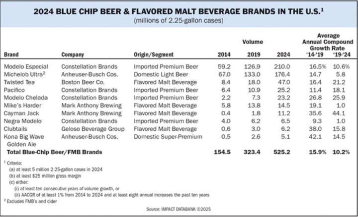 Ten brands from the beer and flavored malt beverage category met the Blue Chip list’s criteria based on their 2024 performances,